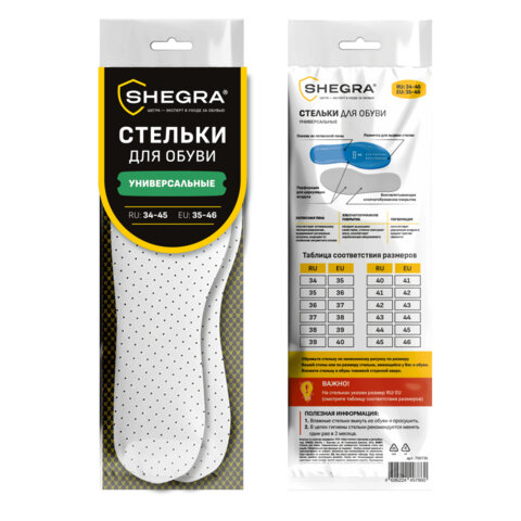 Купить Стельки для обуви УНИВЕРСАЛЬНЫЕ, УНИВЕРСАЛЬНЫЙ размер RU 34-45 / EU 35-46, с линиями выреза, SHEGRA (ШЕГРА), 700736 вы можете в компании Канцтовары Карандашов, оформив заказ в интернет магазине, или