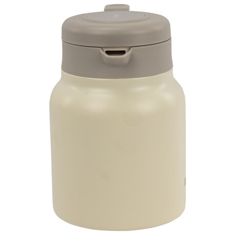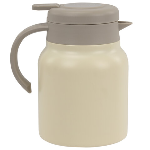 Модель оснащена удобной крышкой с кнопкой-дозатором, позволяющей наливать напиток без полного откручивания крышки – это помогает дольше сохранять температуру содержимого. Эргономичная ручка выполнена из качественного пластика, а стильный корпус представлен в бежевом матовом цвете.