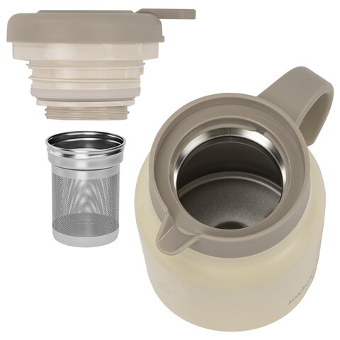 Чайник-термос 1 л JOYLUX (ДЖОЙЛЮКС) COFFEE BREAK, нержавеющая сталь SUS304, заварник/сито, бежевый матовый, 700329