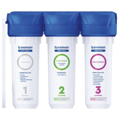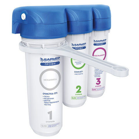 Купить Фильтр для воды с краном в комплекте БАРЬЕР "ПРОФИ Жесткость", 3 ступени, ресурс 10000 л, Н122Р00 вы можете в компании Канцтовары Карандашов, оформив заказ в интернет магазине, или