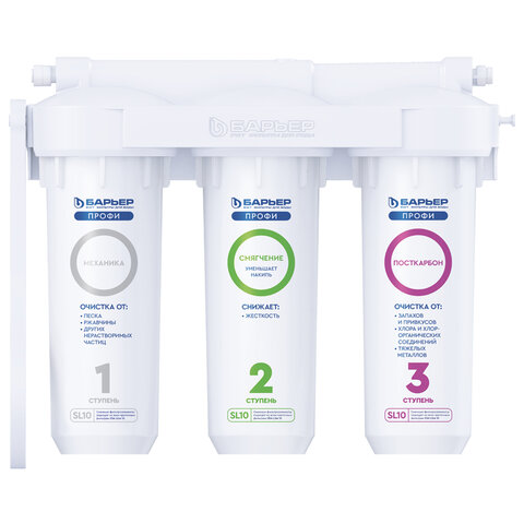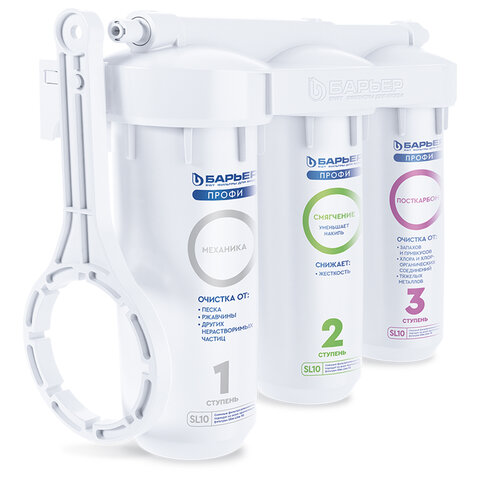 Купить Фильтр для воды с краном в комплекте БАРЬЕР "ПРОФИ Жесткость", 3 ступени, ресурс 10000 л, Н123Р00 вы можете в компании Канцтовары Карандашов, оформив заказ в интернет магазине, или
