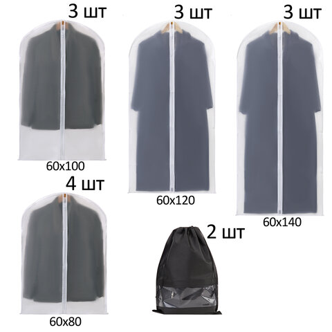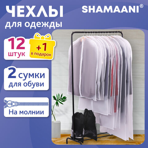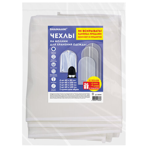 Купить Чехлы для хранения одежды на молнии, КОМПЛЕКТ 12 шт. + 1 чехол + 2 сумки для обуви в подарок, SHAMAANI (ШАМААНИ), 609595 вы можете в компании Канцтовары Карандашов, оформив заказ в интернет магазине, или