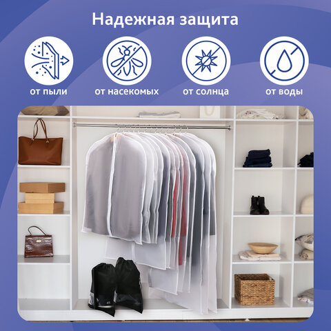 Чехлы для хранения одежды на молнии, КОМПЛЕКТ 12 шт. + 1 чехол + 2 сумки для обуви в подарок, SHAMAANI (ШАМААНИ), 609595