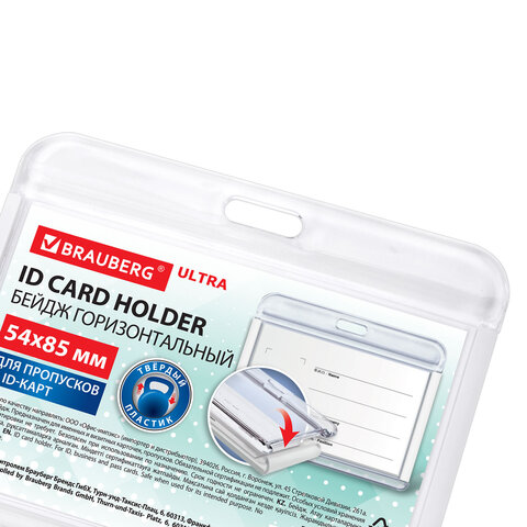 Купить Бейдж горизонтальный для пропуска и ID-карт, 54х85 мм, белый, BRAUBERG ULTRA, 238917 вы можете в компании Канцтовары Карандашов, оформив заказ в интернет магазине, или