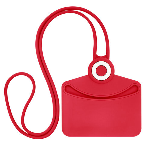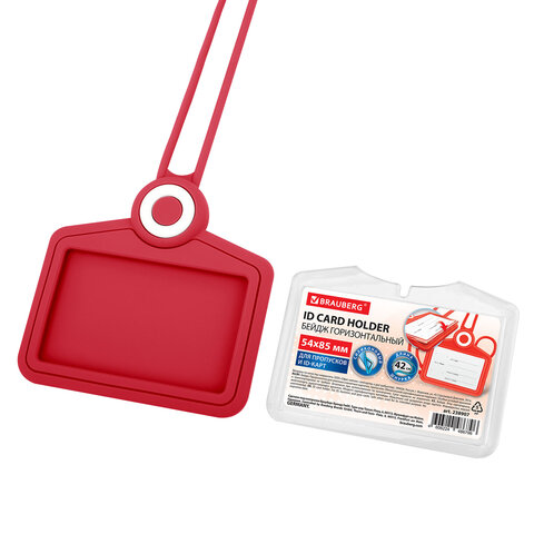 Купить Бейдж горизонтальный для пропуска и ID-карт, СИЛИКОНОВЫЙ, 54х85 мм, шнурок 42 см, красный BRAUBERG, 238907 вы можете в компании Канцтовары Карандашов, оформив заказ в интернет магазине, или