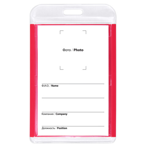 Бейдж вертикальный для пропуска и ID-карт, 85х54 мм, красный, BRAUBERG ULTRA, 238911