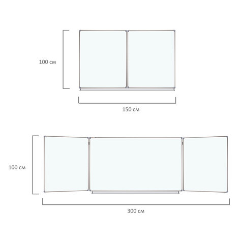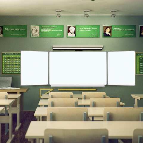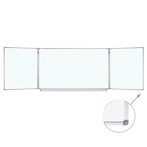 Доска магнитно-маркерная 3-х элементная 100х150/300 см, 5 рабочих поверхностей, белая, BRAUBERG, 231708