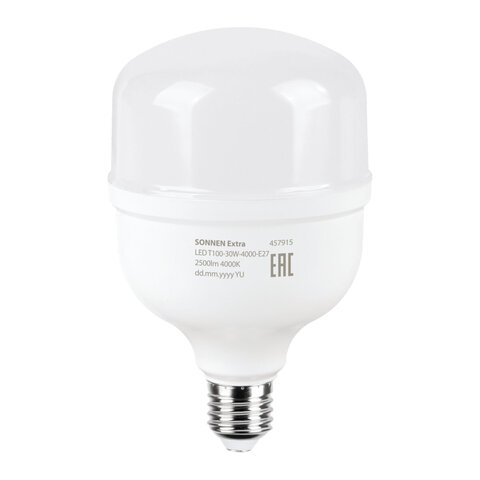 Купить Лампа светодиодная SONNEN EXTRA, 30 (250) Вт, Е27, цилиндр, нейтральный белый, 30000 ч, LED Т100-30W-4000-Е27, 457915 вы можете в компании Канцтовары Карандашов, оформив заказ в интернет магазине, или