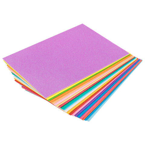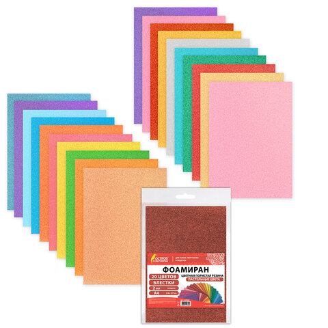 Купить Пористая резина/фоамиран А4, 2 мм, НАБОР, 20 листов, 20 цветов, пастельные цвета, блестки, ОСТРОВ СОКРОВИЩ, 665665 вы можете в компании Канцтовары Карандашов, оформив заказ в интернет магазине, или
