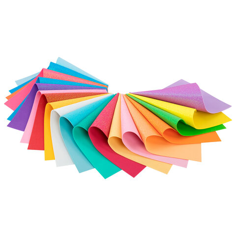 Пористая резина/фоамиран А4, 2 мм, НАБОР, 20 листов, 20 цветов, пастельные цвета, блестки, ОСТРОВ СОКРОВИЩ, 665665
