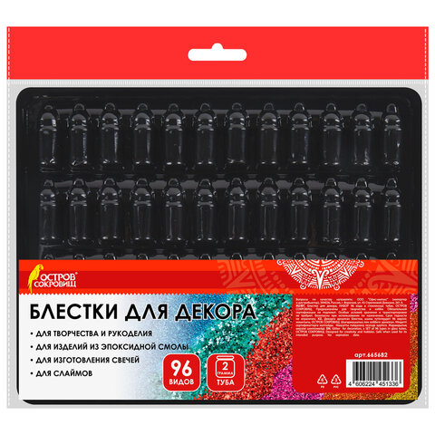 Купить Блестки для декора НАБОР 96 видов по 2 грамма, в стеклянных тубах, ОСТРОВ СОКРОВИЩ, 665682 вы можете в компании Канцтовары Карандашов, оформив заказ в интернет магазине, или