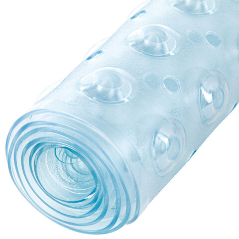 Коврик для ванны противоскользящий 88х40 см, "Пузыри", прозрачно-голубой, ПВХ, присоски, PRIMILA (ПРИМИЛА), 700365