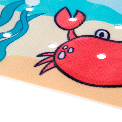 Этот яркий и привлекательный коврик с милым детским рисунком не только украсит ванную комнату, но и создаст безопасное пространство для водных процедур. Специальная текстура коврика предотвращает скольжение. Удобные присоски на дне коврика обеспечивают крепкое сцепление с поверхностью ванны, гарантируя, что коврик останется на месте даже во время активных игр.