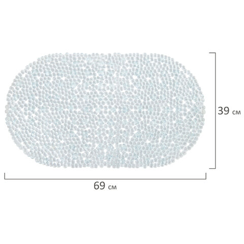 Коврик для ванны противоскользящий 69х40 см, "Камешки", овальный, прозрачно-голубой, ПВХ, PRIMILA (ПРИМИЛА), 700368