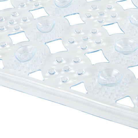 Коврик для ванны противоскользящий 88х40 см, "Пузыри", прозрачно-голубой, ПВХ, присоски, PRIMILA (ПРИМИЛА), 700365