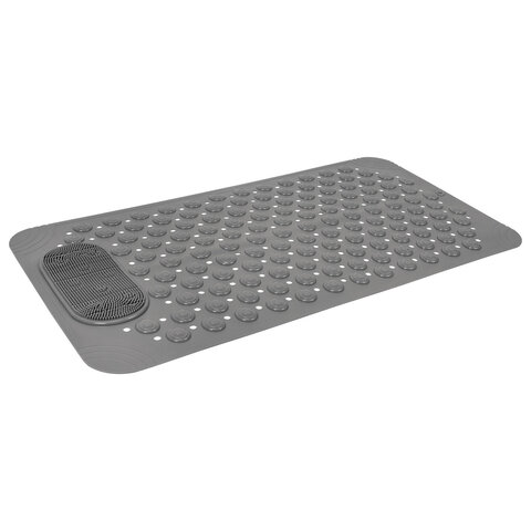 Коврик для ванны противоскользящий с теркой для ступней 68х36 см, серый, ПВХ, присоски, PRIMILA (ПРИМИЛА), 700389