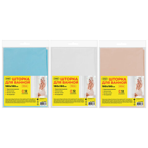 Купить Шторка для ванной PEVA, 180х180 см, кольца в комплекте, цвет ассорти (белый, голубой, коричневый), WBZ (ВБЗ), 700067 вы можете в компании Канцтовары Карандашов, оформив заказ в интернет магазине, или