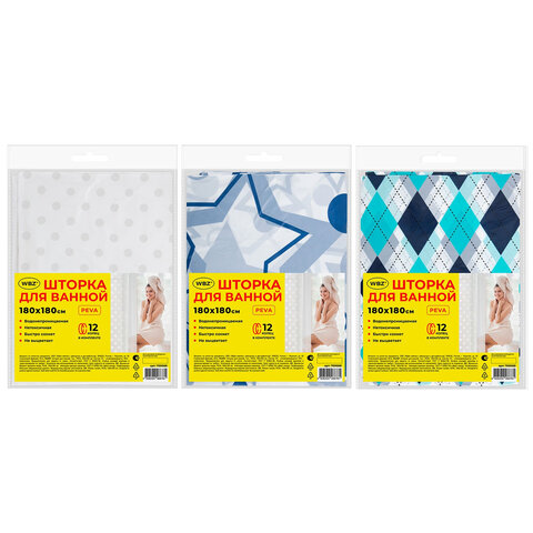 Купить Шторка для ванной PEVA, 180х180 см, кольца в комплекте, дизайн ассорти, УЗОРЫ, WBZ (ВБЗ), 700068 вы можете в компании Канцтовары Карандашов, оформив заказ в интернет магазине, или