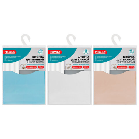Купить Шторка для ванной PEVA, 180х200 см, кольца в комплекте, цвет ассорти (белый, голубой, коричневый), PRIMILA (ПРИМИЛА), 700073 вы можете в компании Канцтовары Карандашов, оформив заказ в интернет магазине, или