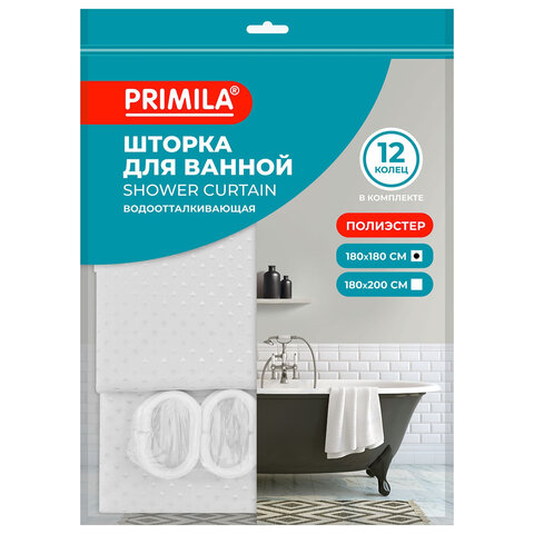 Купить Шторка для ванной ПОЛИЭСТЕР, 180х180 см, кольца в комплекте, БЕЛЫЙ БРИЛЛИАНТ, PRIMILA (ПРИМИЛА), 700087 вы можете в компании Канцтовары Карандашов, оформив заказ в интернет магазине, или