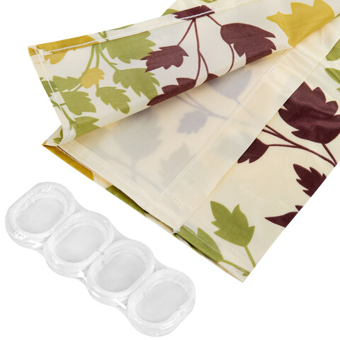 В комплекте со шторкой идут 12 прочных полипропиленовых колец, которые подойдут под любой тип карниза.