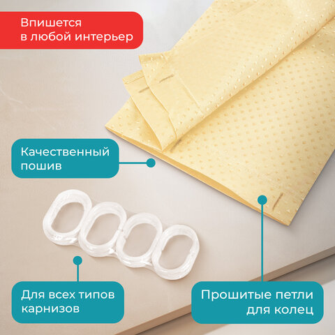 В комплекте с шторкой идут 12 прочных полипропиленовых колец, которые подойдут под любой тип карниза.