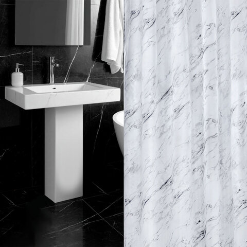Купить Шторка для ванной ПОЛИЭСТЕР, 180х200 см, кольца в комплекте, БЕЛЫЙ МРАМОР, PRIMILA (ПРИМИЛА), 700084 вы можете в компании Канцтовары Карандашов, оформив заказ в интернет магазине, или