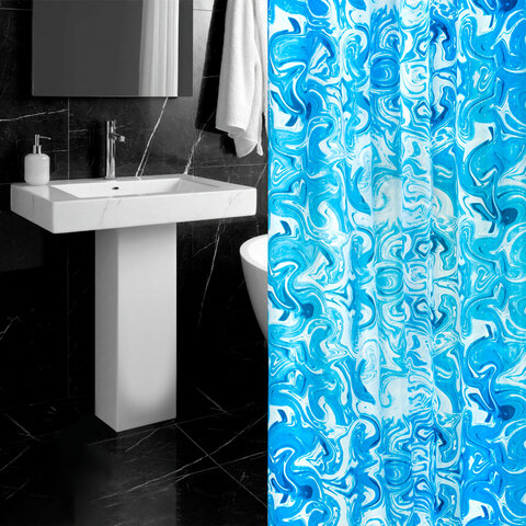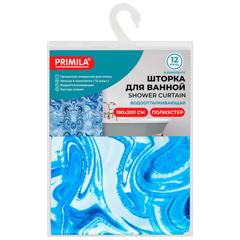 Купить Шторка для ванной ПОЛИЭСТЕР, 180х200 см, кольца в комплекте, ГОЛУБЫЕ ВОЛНЫ, PRIMILA (ПРИМИЛА), 700083 вы можете в компании Канцтовары Карандашов, оформив заказ в интернет магазине, или