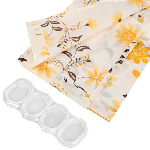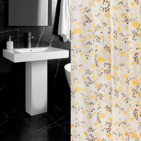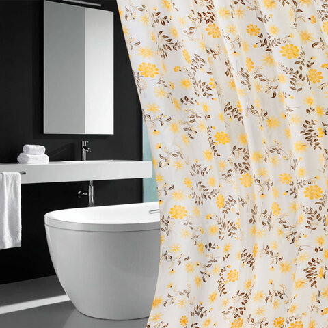Шторка для ванной PEVA, 180х180 см, кольца в комплекте, дизайн ассорти, ЦВЕТЫ, WBZ (ВБЗ), 700071