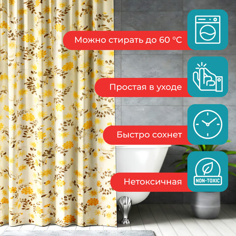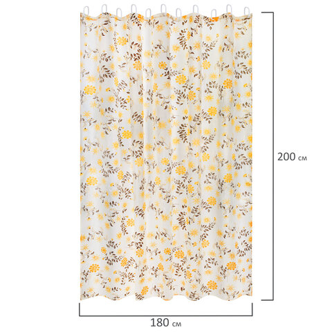 Шторка для ванной ПОЛИЭСТЕР, 180х200 см, кольца в комплекте, ЦВЕТЫ, PRIMILA (ПРИМИЛА), 700082