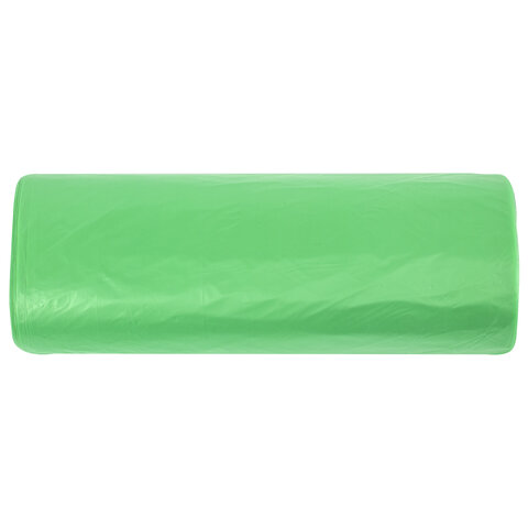 Мешки для мусора биоразлагаемые 60 л, зеленые, рулон 20 шт., ПНД 15 мкм, 60х70 см, ЛЮБАША, 608099