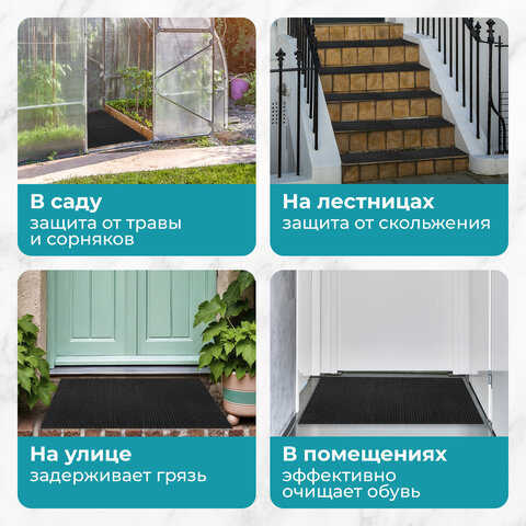 Купить Коврик придверный 60х90 см, ЧЕРНЫЙ пластиковый грязезащитный, толщина 10 мм, "ТРАВКА", PRIMILA (ПРИМИЛА), 701066 вы можете в компании Канцтовары Карандашов, оформив заказ в интернет магазине, или