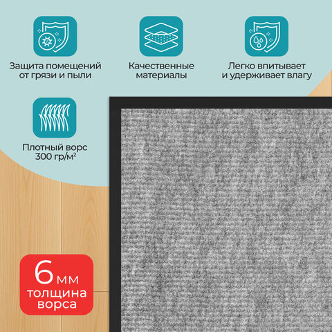 Купить Коврик придверный 40х60 см, СЕРЫЙ, влаго-грязезащитный, 300 г/м2, мелкий рубчик, PRIMILA (ПРИМИЛА) STANDARD, 701018 вы можете в компании Канцтовары Карандашов, оформив заказ в интернет магазине, или