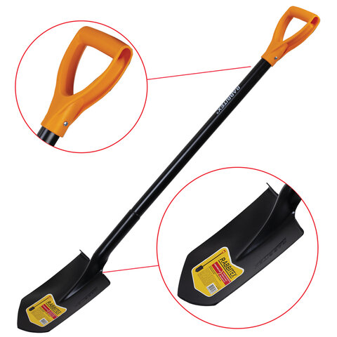 Эргономичный дизайн включает закругленную верхнюю кромку рабочего полотна для комфортного нажатия ногой и удобную рукоятку универсального размера, позволяющую работать как в перчатках, так и без них. Размер рабочей части и продуманная геометрия лопаты сделают работу максимально эффективной.