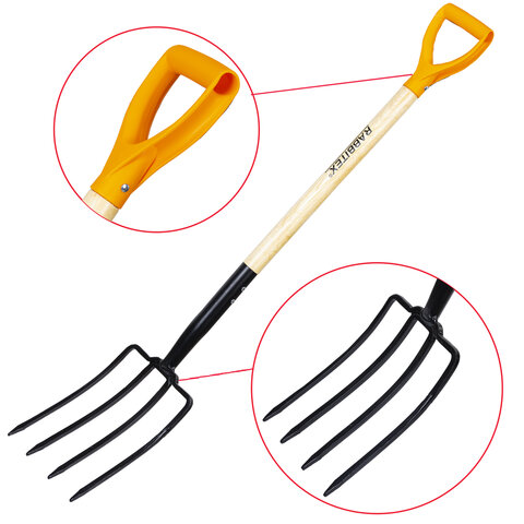 Стальные копальные вилы RABBITEX "STANDARD" с черенком из дерева твердых пород выполнены из закаленной легированной стали. Благодаря высокому качеству материалов и продуманному эргономичному дизайну прослужат вам долгие годы.