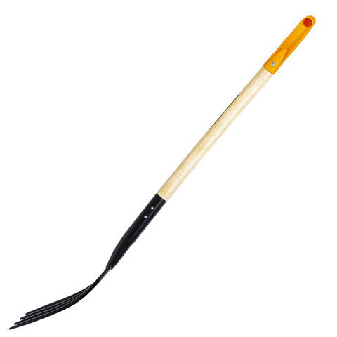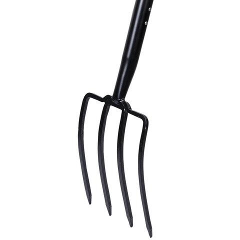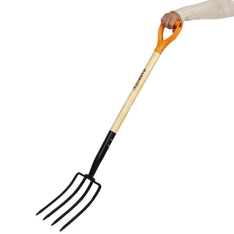 Максимальная надежность обеспечивается рабочим полотном из стали, прошедшей специальную закалку. Инструмент способен выдержать любые нагрузки при длительной работе без потери прочности. Вилы оснащены 4 острыми стальными зубьями, расположенными под оптимальным углом для эффективной работы с любыми материалами, а также удобной рукояткой универсального размера, позволяющей работать как в перчатках, так и без них.