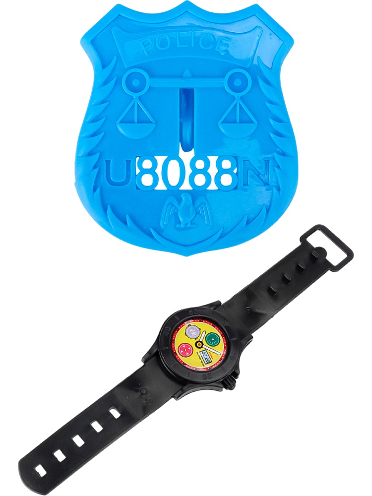етское игрушечное оружие может стать отличным подарком для любого мальчика, ведь оно дает возможность почувствовать себя сильным, храбрым и смелым. К тому же, ролевые игры с применением детского оружия помогают развить воображение и сообразительность малыша. В комплекте: пистолет (размер: 16х10 см.), 3 пули (длина пули: 8 см), часы ( длина с ремешком: 18 см), значок полицейского (размер: 6х5,5 см). В пакете.