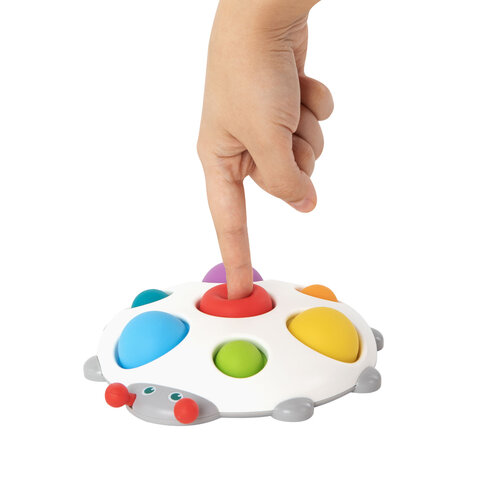 Игрушка выполнена из безопасных и высококачественных материалов. Основание игрушки выполнено из прочного и качественного ABS-пластика. Яркие кнопки для нажатия в стиле Pop it выполнены из силикона.