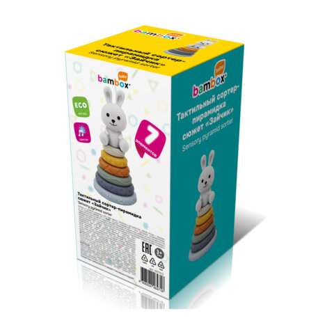 Купить Тактильная игрушка-сортер, пирамидка "Зайчик", 7 элементов, сенсорная развивающая, ЭКО, BAMBOX BABY (БАМБОКС БЭБИ), 665913 вы можете в компании Канцтовары Карандашов, оформив заказ в интернет магазине, или