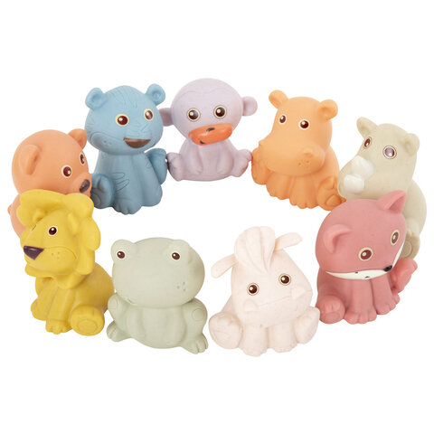 В наборе представлены 9 фигурок животных в пастельных тонах, изготовленных из безопасного ПВХ и экологичного материала. С набором из тактильных животных малыш научится распознавать животных, выучит цвета и научится считать. Развивающие игрушки подходят для игр на суше и в в воде. Ребёнок будет играть и купаться, познавая окружающий мир с удовольствием!