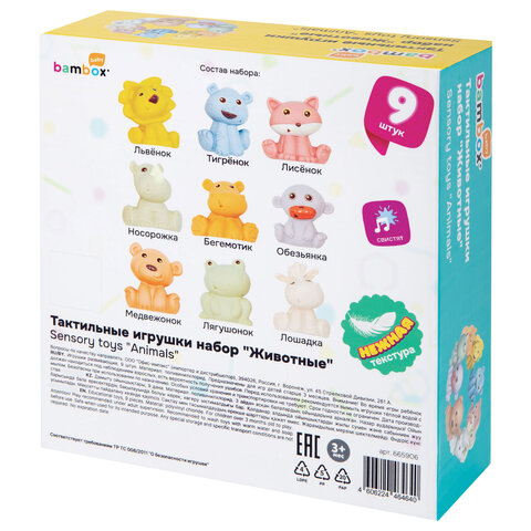 Тактильные игрушки, "Животные", сенсорные развивающие, ЭКО, 9 штук, BAMBOX BABY (БАМБОКС БЭБИ), 665906