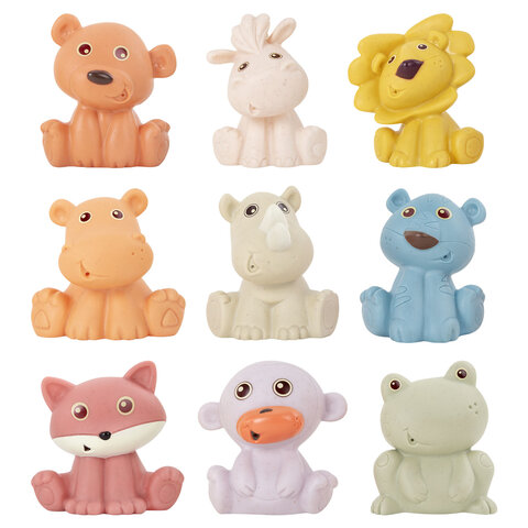 В наборе представлены: львёнок, тигрёнок, лисёнок, носорожка, бегемотик, обезьянка, медвежонок, лягушонок, лошадка.