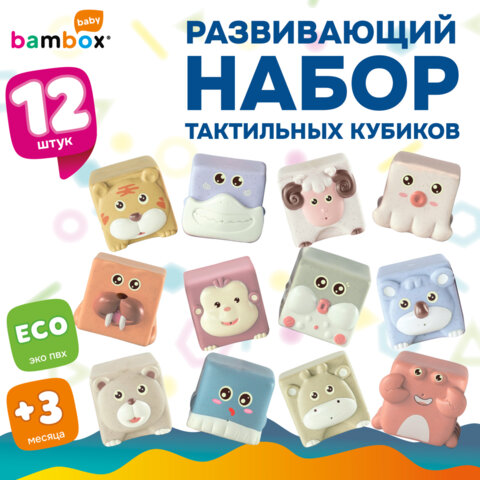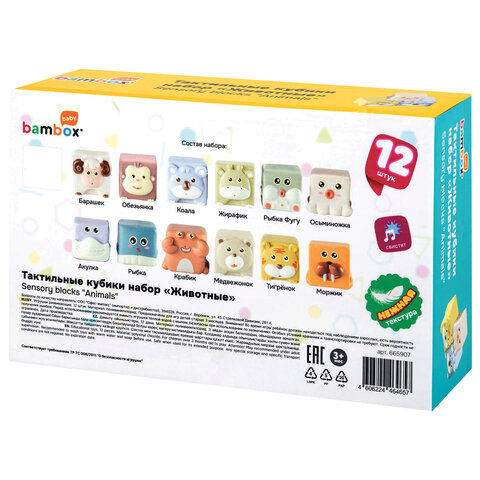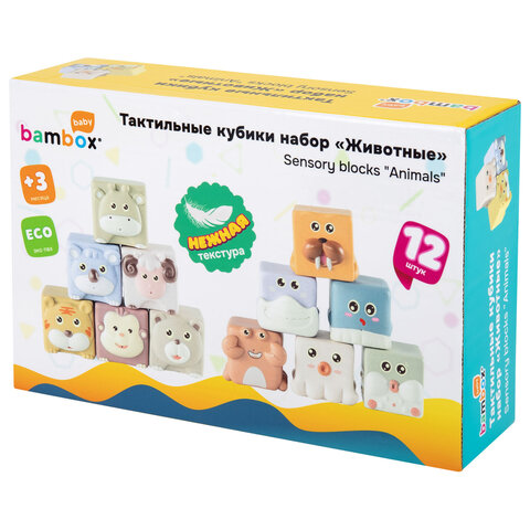 Купить Тактильные кубики "Животные", сенсорные игрушки развивающие, ЭКО, 12 штук, BAMBOX BABY (БАМБОКС БЭБИ), 665907 вы можете в компании Канцтовары Карандашов, оформив заказ в интернет магазине, или