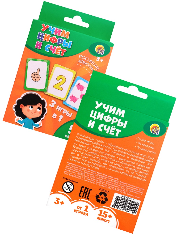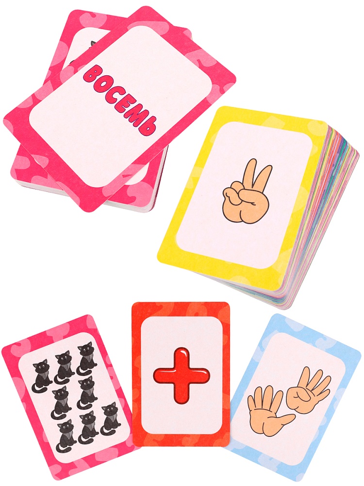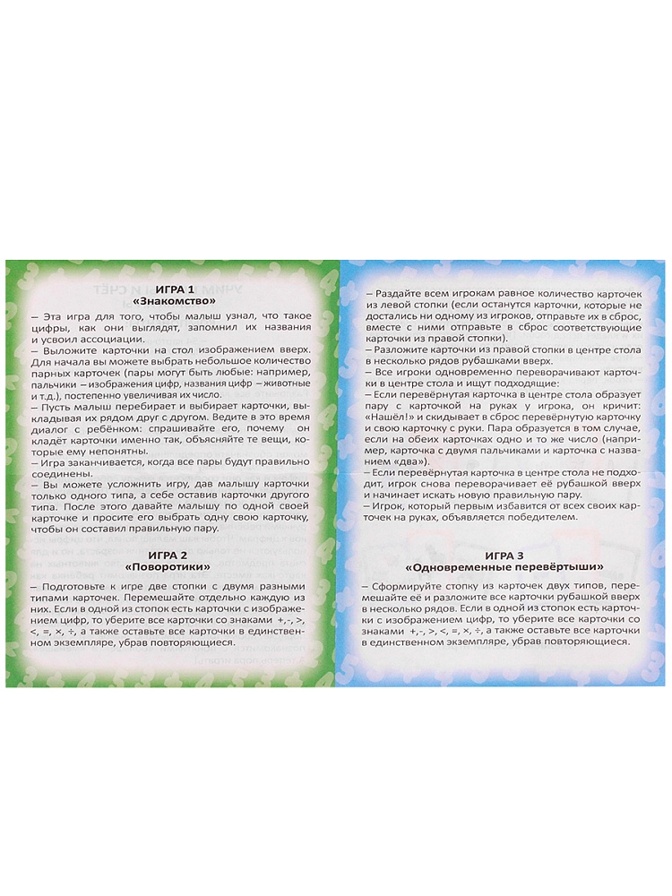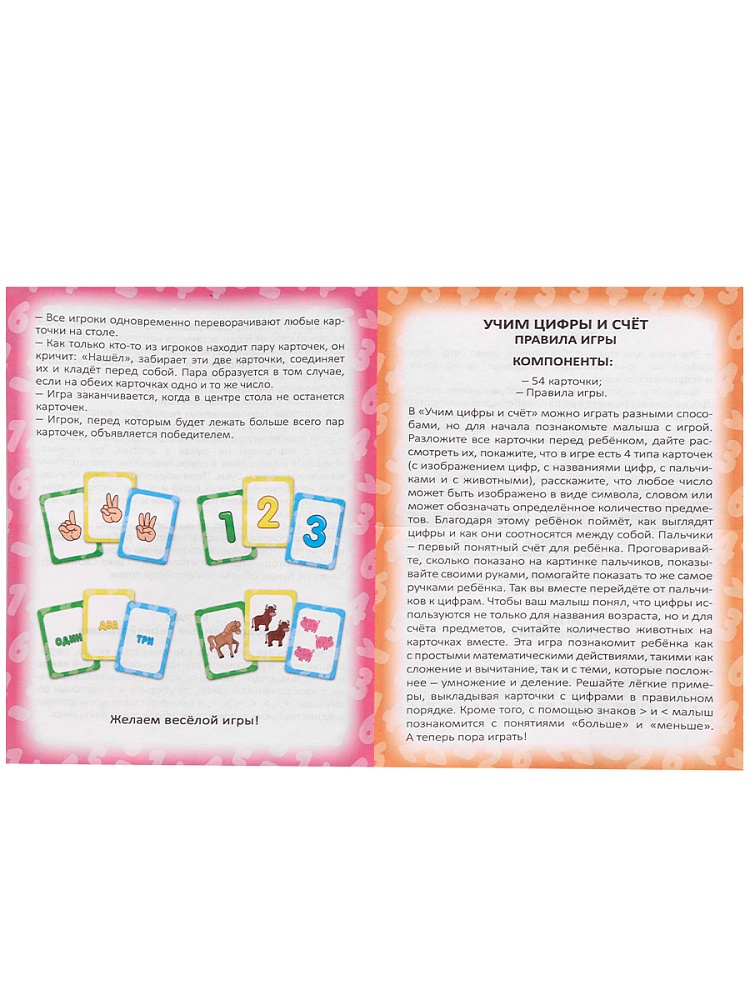 54 карточки (109х74 мм), правила игры 5 игр в 1! Возраст: 3+. Количество игроков: 1+. Время игры: 15+.