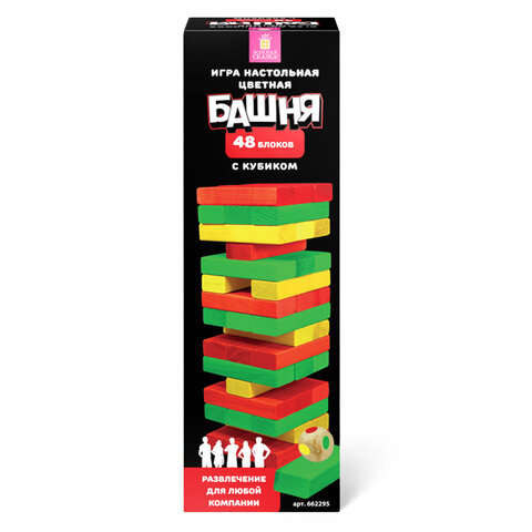 Игра настольная ЦВЕТНАЯ БАШНЯ, 48 окрашенных деревянных блоков + кубик, ЗОЛОТАЯ СКАЗКА, 662295