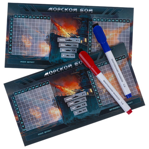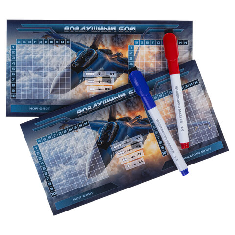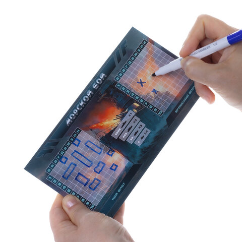 Игра настольная "Пиши-Стирай" МОРСКОЙ / ТАНКОВЫЙ / ВОЗДУШНЫЙ БОЙ, 2 стираемых маркера, ассорти, HATBER, Ин
