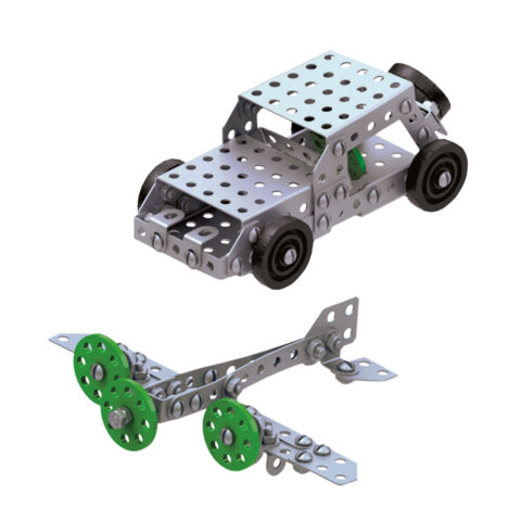 Комплектация набора: 146 элементов, гаечный ключ, отвертка, пошаговая инструкция по сборке.