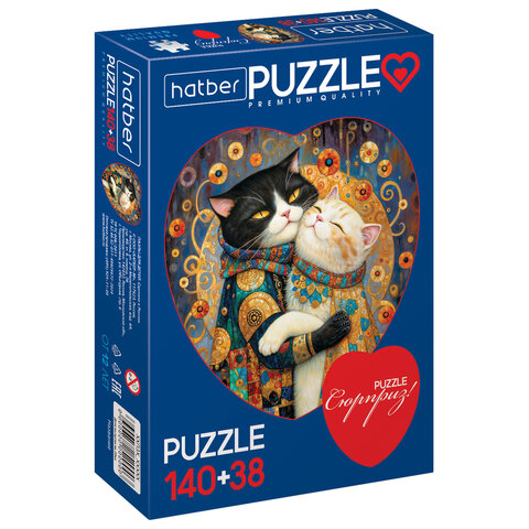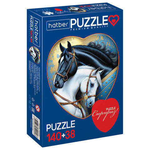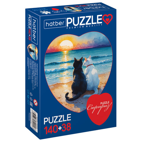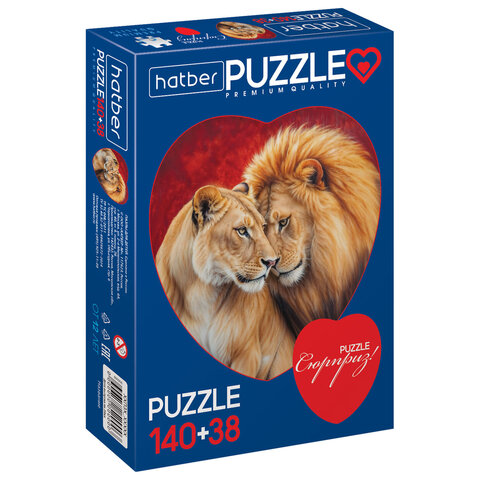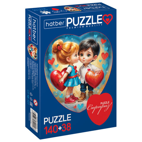 Купить Пазл картонный 2 в 1 "ДВА СЕРДЦА" Premium, 140 + 38 элементов, ассорти, размер поля 270х280 мм, 100х110 мм, HATBER вы можете в компании Канцтовары Карандашов, оформив заказ в интернет магазине, или