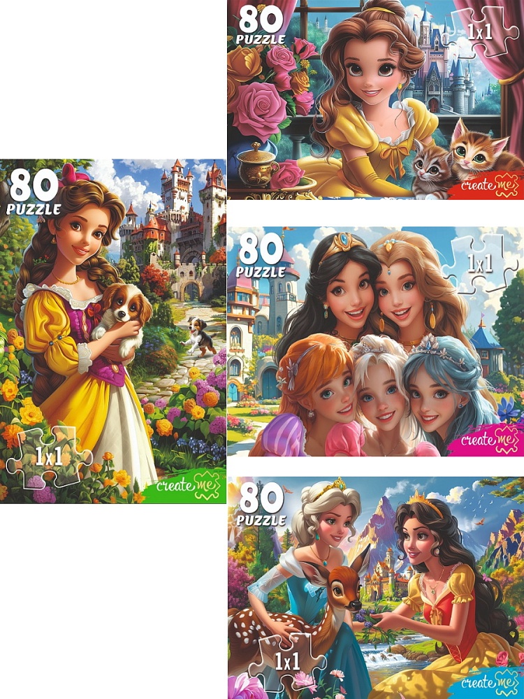 Купить ПАЗЛЫ 80 элементов. СКАЗОЧНЫЕ ПРИНЦЕССЫ (Арт. Ф80-2004) кратно 16 вы можете в компании Канцтовары Карандашов, оформив заказ в интернет магазине, или