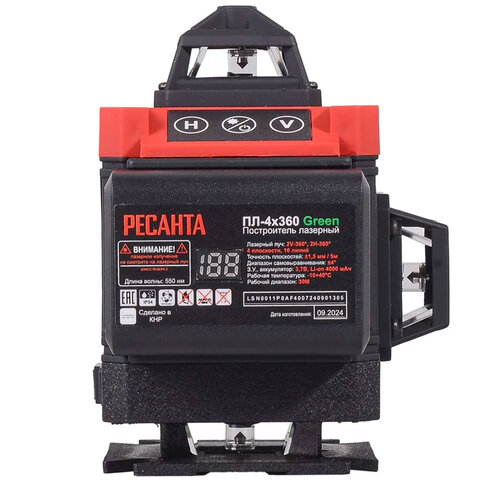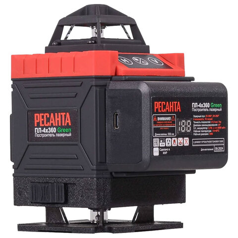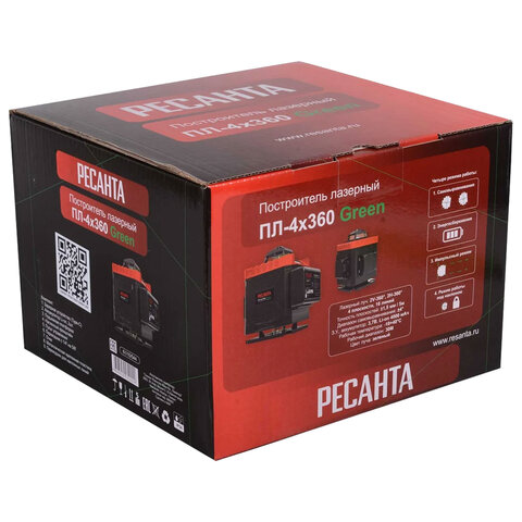 Купить Уровень лазерный, 4 луча, самовыравнивание ± 4 град, РЕСАНТА ПЛ-4Х360 Green, 61/10/544 вы можете в компании Канцтовары Карандашов, оформив заказ в интернет магазине, или